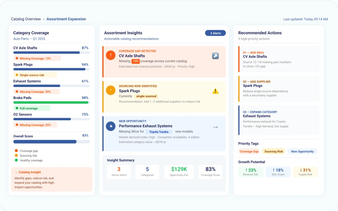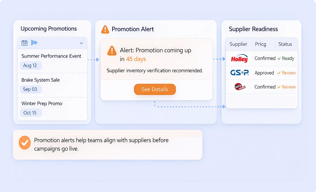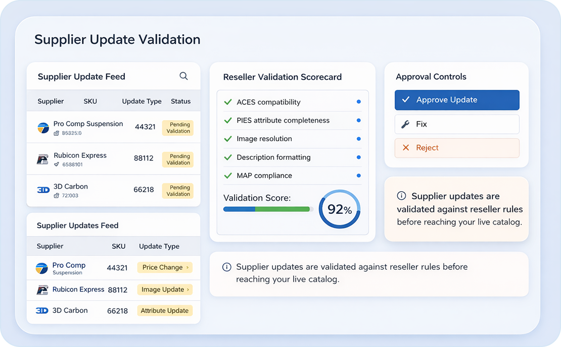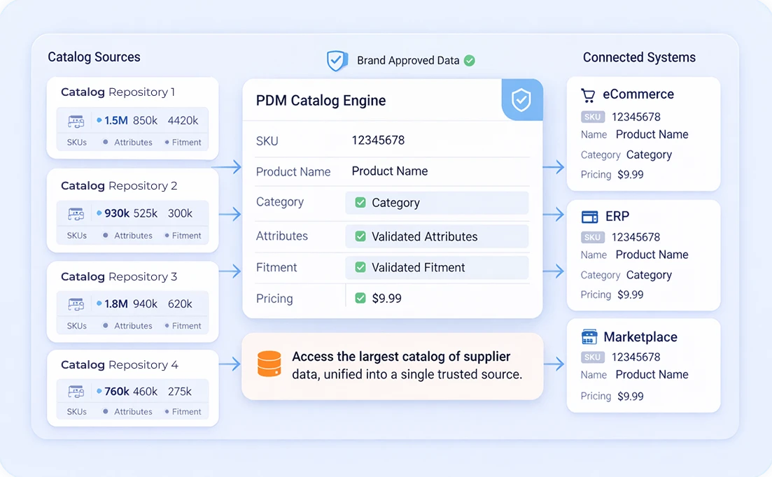 PDM normalizes descriptions, fitment, attributes, and media so your team can onboard SKUs faster and keep your catalog consistent across every channel.