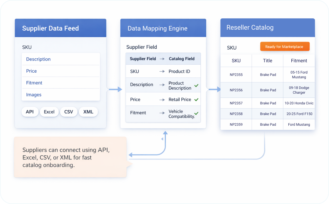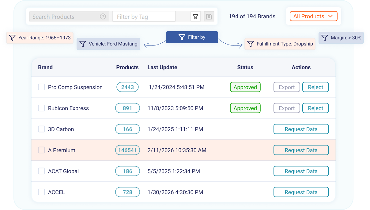 Resellers get access to curated suppliers who meet performance and data quality standards, plus tools to manage onboarding and communication efficiently.